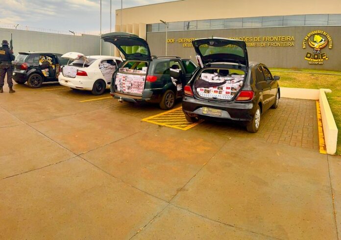 Policiais militares do DOF (Departamento de Operações de Fronteira) apreenderam na manhã desta segunda-feira (1), em Maracaju, quatro veículos que seguiam juntos carregados com cigarros contrabandeados do Paraguai, pneus e drones. Na ação, cinco homens com idades entre 24 e 40 anos foram presos, além de uma mulher de 38 anos.