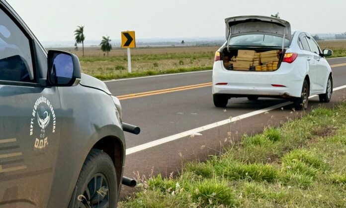Policiais militares do DOF (Departamento de Operações de Fronteira) apreenderam nesta quarta-feira (3), em Amambai, mais de 650 quilos de maconha e skunk, que eram transportados em um veículo Hyundai HB20, roubado no Estado de São Paulo. Na ação, um foragido da justiça de 34 anos foi preso em flagrante.