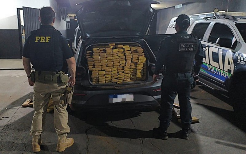 No carro foram encontrados os tabletes de maconha. As equipes também descobriram que as placas utilizadas eram falsas e o carro possuía registro de furto, em Mogi das Cruzes/SP, desde abril de 2025.