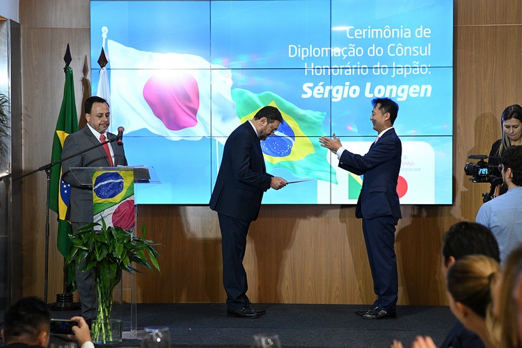 “É o primeiro cônsul honorário da história de Mato Grosso do Sul. Sérgio, além de exercer uma liderança forte no Estado, como presidente da Fiems, também cultiva laços familiares com a comunidade através da sua esposa, Adriana Sato, nipo-brasileira de segunda geração. São motivos que mais do que o habilitam a trabalhar com a nossa embaixada”, destacou.