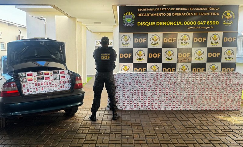 Policiais militares do DOF (Departamento de Operações de Fronteira) apreenderam, na madrugada deste domingo (19), na BR-267, em Nova Alvorada do Sul, um GM Vectra carregado com 2 mil pacotes de cigarros contrabandeados do Paraguai. Na ação ninguém foi preso.