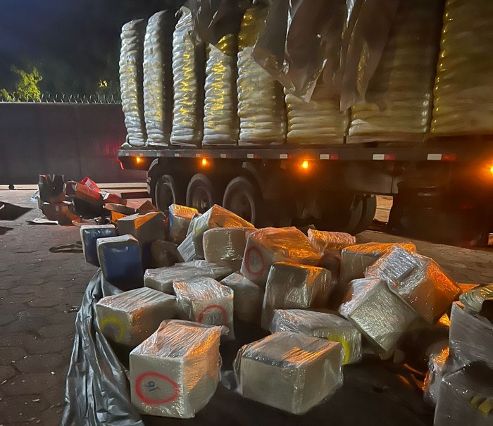 A ação ocorreu em um barracão onde funciona uma empresa, local em que as equipes flagraram o momento em que a droga era inserida no meio de uma carga de fertilizantes transportada por um caminhão. Quando o veículo deixava o local, os policiais realizaram a abordagem e prenderam dois suspeitos; um terceiro conseguiu fugir.