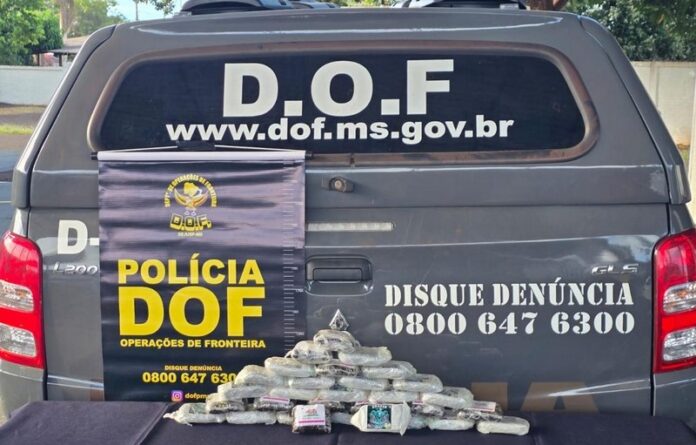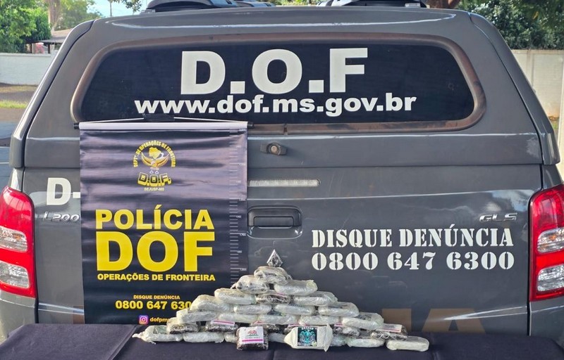 Policiais militares do DOF (Departamento de Operações de Fronteira) prenderam, neste sábado (10), em Maracaju, uma mulher de 21 anos com 3,1 quilos de haxixe marroquino presos ao corpo.