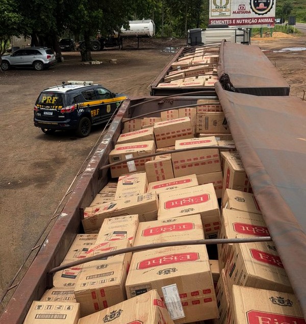 PRF apreende 600 mil maços de cigarros em caminhão com dois reboques