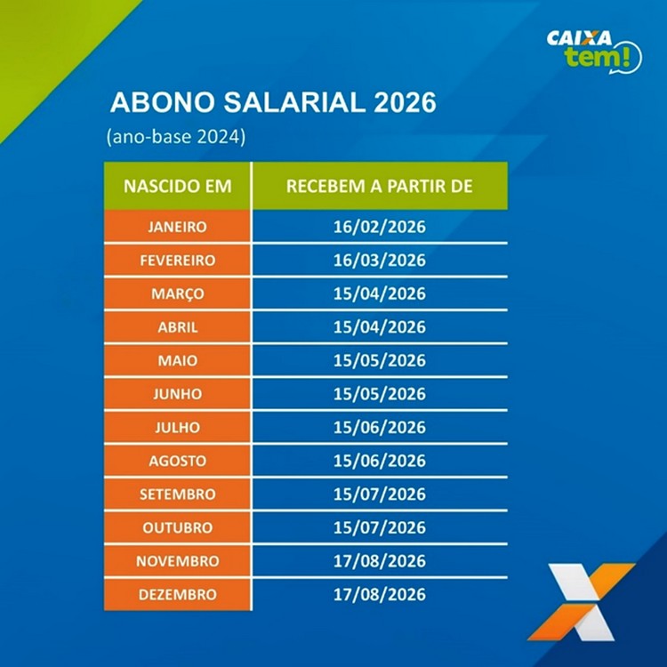 A CAIXA e o Governo do Brasil realizam hoje (16) o pagamento do Abono Salarial calendário 2026, referente ao ano-base 2024, para 1,7 milhão de trabalhadores nascidos em fevereiro.