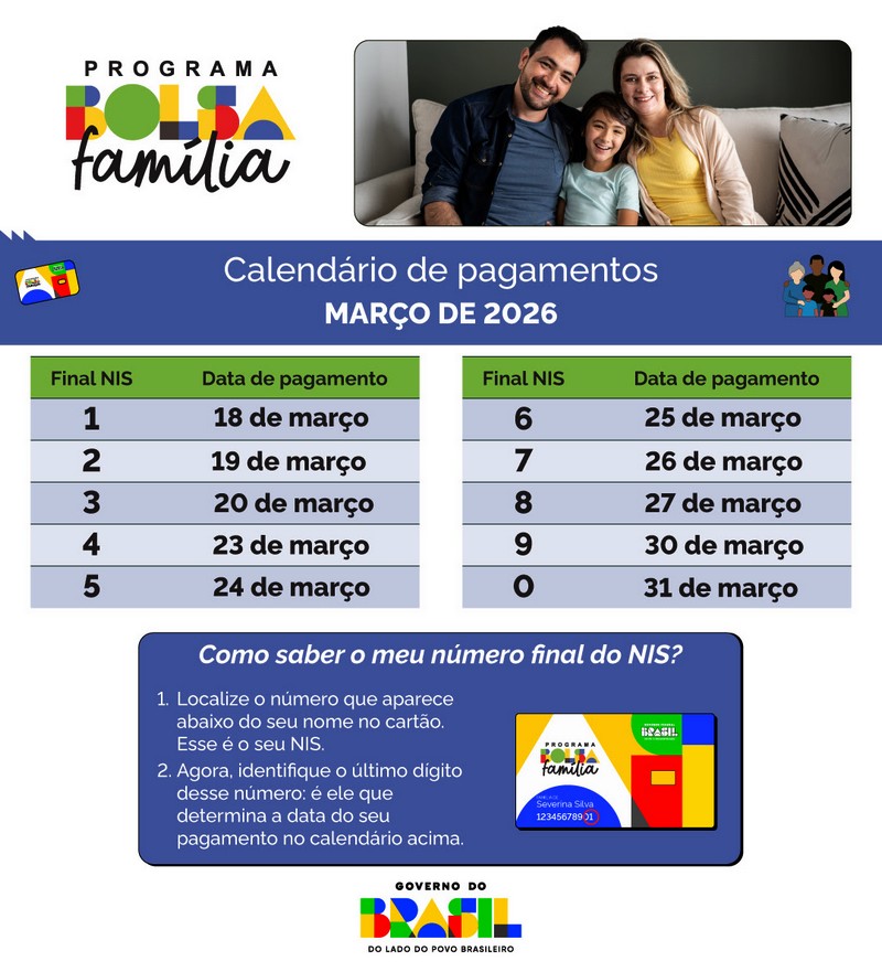 Calendário de pagamentos do Bolsa Família em março de 2026