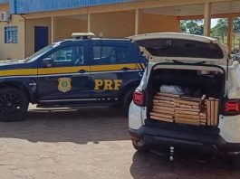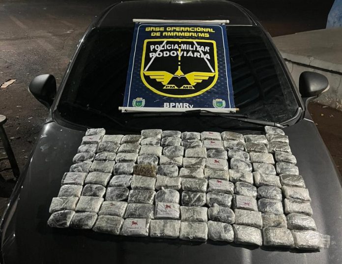 A ação ocorreu por volta das 19h30, no km 200, trecho entre Amambai e Caarapó, quando a equipe abordou um veículo Fiat/Argo, com placas de Santo André/SP.