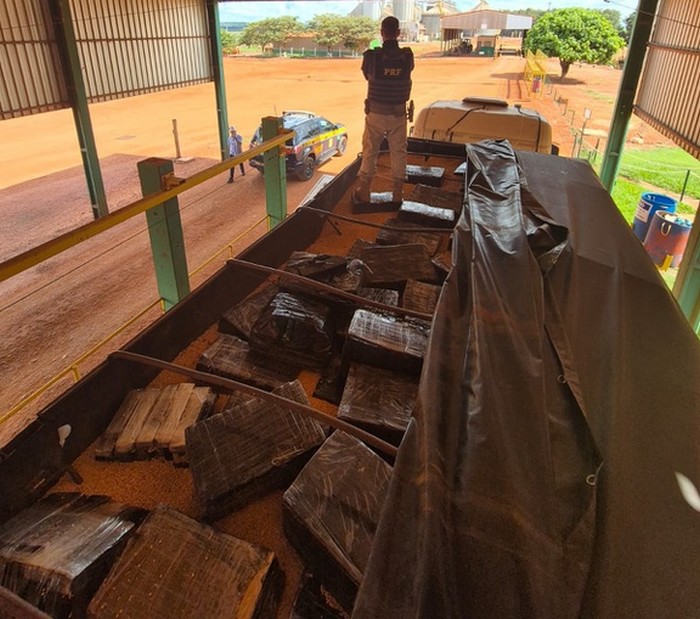 Ao realizarem a vistoria no veículo, os policiais inspecionaram o compartimento de carga e localizaram diversos fardos do entorpecente camuflados em meio à carga de milho. A estratégia, segundo a PRF, tinha o objetivo de dificultar a identificação do material ilícito durante o transporte.
